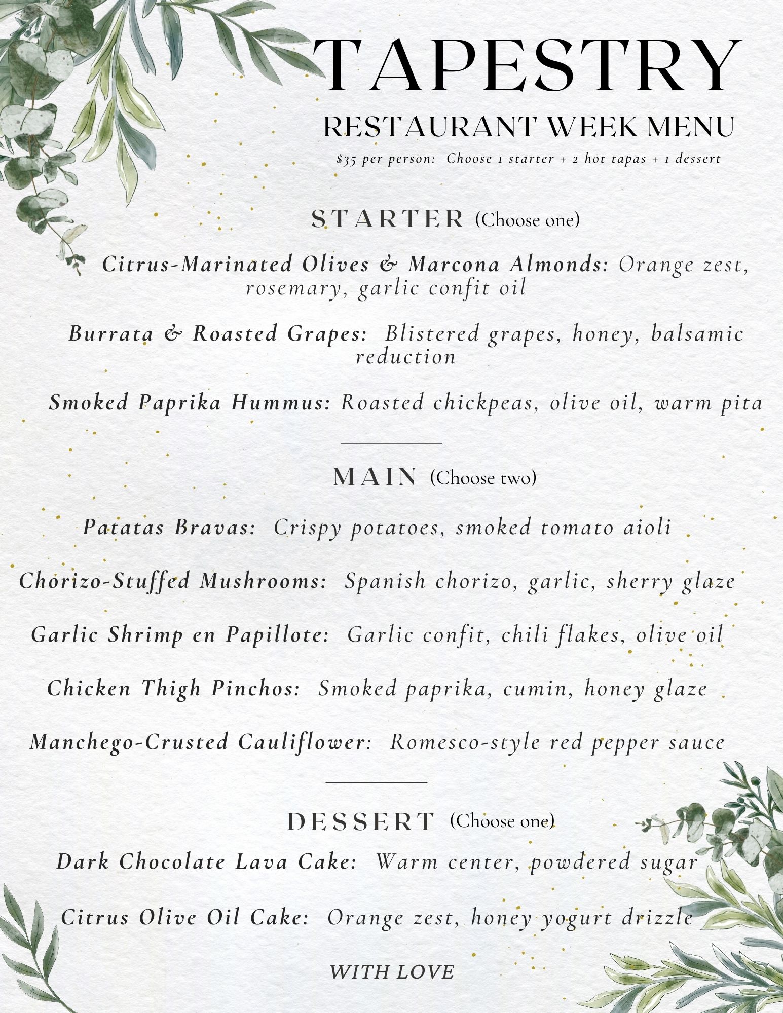 No spam, notifications only about new restaurant week updates.